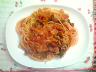 教育テレビでナポリタン作っていたので、自分も久々にやってみた。